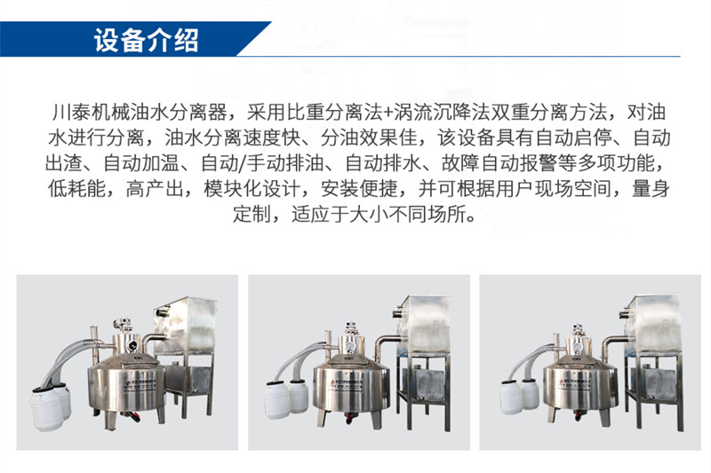 餐廚垃圾破碎--壓榨脫水--油水分離處理一體機(jī)火鍋店專(zhuān)用油水分離器、火鍋店油水分離器多少、火鍋店隔油設(shè)備、餐飲專(zhuān)用油水分離器,火鍋店油水分離一體機(jī)、火鍋店油水分離設(shè)備廠家。處理量500-1000KG,瀝水、加熱、攪拌、油水分離 ... ... 功能齊全,全自動(dòng)運(yùn)行,使用方便...火鍋店專(zhuān)用油水分離器